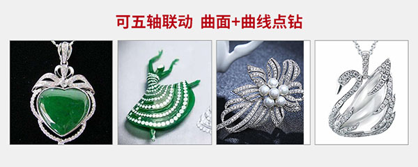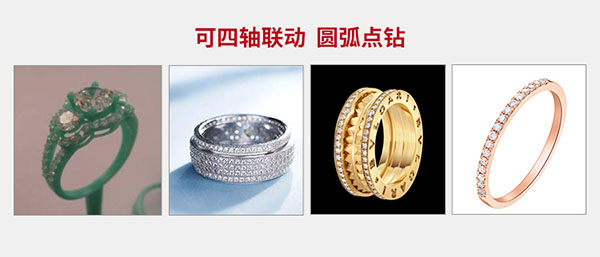金米智能-珠寶首飾自動點鉆機,是一款用于解決珠寶首飾蠟模鑲鉆效率低而研發的五軸聯動自動點鉆機。效率高,一臺 機器可預借4-8個人工,一小時可鑲9000顆鉆,使生產效率提升數倍并大大縮減人工成本。一機多功能:平面、圓弧、立 體多維面自動點鉆。操作簡單:10.4寸中文觸屏操作系統,傻瓜式操作,簡單易學。適用廣泛:戒指、吊墜、耳飾、胸 針、等各種帶鉆的珠寶飾品自動蠟鑲鉆。