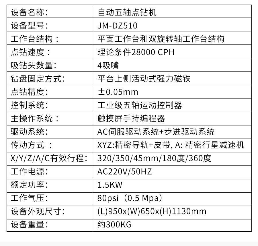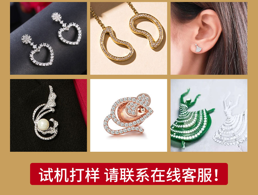 全自動五軸點鉆機,是金米智能專門用于解決珠寶首飾鑲鉆效率低而研發的產品。可用于戒指、吊墜、耳飾、胸針、手表等各種帶鉆的珠寶飾品。五軸聯動多功能,平面、圓弧、立體多維面自動。定位精準,效率高,1機最多可頂替8個人工,1小時可點9000顆鉆(4頭吸嘴真實測試數據)。10.4寸中文觸屏操作系統,傻瓜式操作,簡單易學。 可試機打樣!