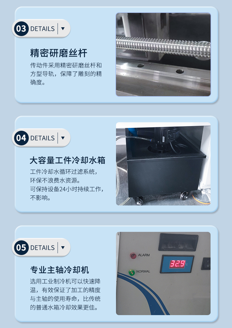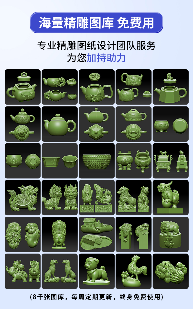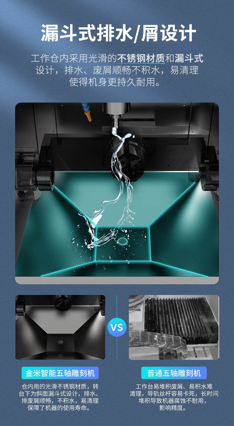 JM510S中型五軸雕刻機是一款高精度的五軸聯動精雕機,外觀時尚美觀,全封閉式加工臺設計,靜音效果更佳,自動升降亞克力門設計,使用更方便,透明窗口,方便隨時觀察雕刻情況。帶自動換刀系統:無需人工換刀,內部全密封高圓盤刀庫,可容納6把刀具,實現換刀時間5-6秒,大大減間。回收方便:底下采用不銹鋼漏斗形回收盤,內部鏈接縫均采用特殊材料全密封,回收率高達99.95%以上。對于雕刻一些貴重的材料,需要回收粉屑非常的方便??傻窨滩牧希航疸y首飾、玉石、翡翠、金屬、牙齒、鋁材、石膏、樹脂、木頭等人造材料。