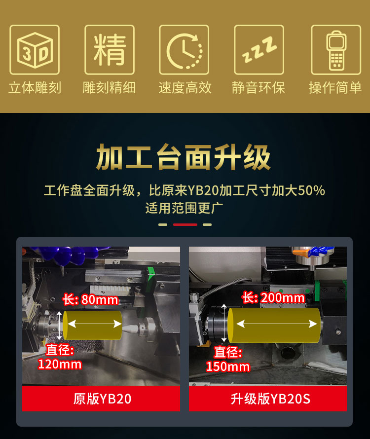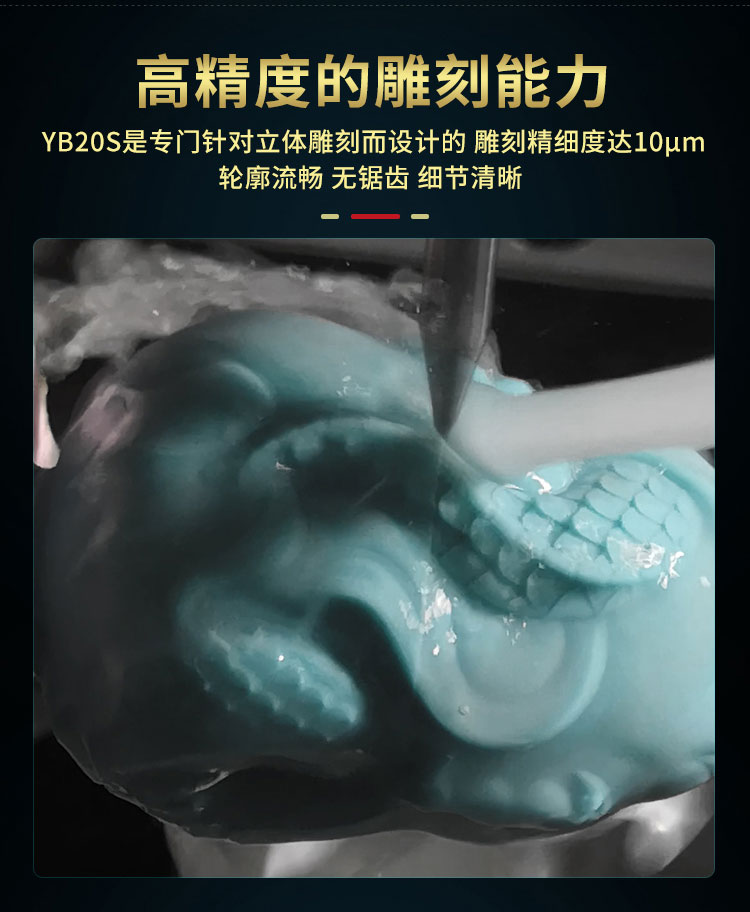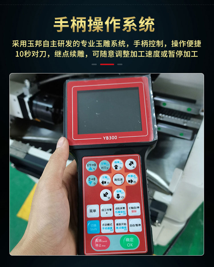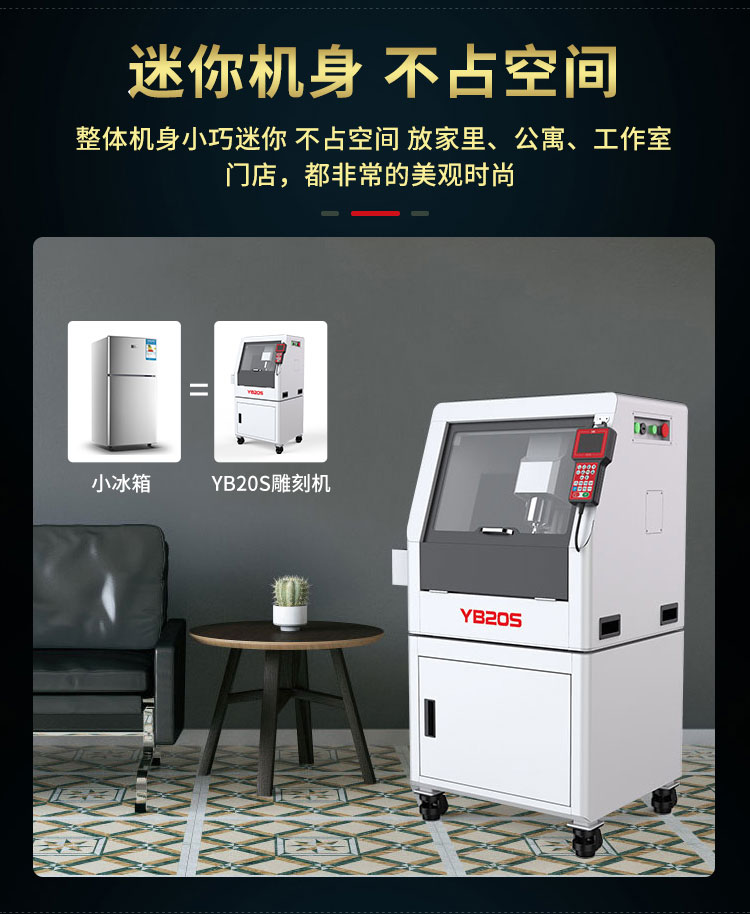 YB20是一款小型立體雕刻機,專門針對小型的立體雕刻而設計,擁有高精細的雕刻能力。適合雕刻:回紋珠子、扳指、小擺件、小手把件,吊墜掛件,橄欖核等。適合材料:翡翠、和田玉、岫玉、瑪瑙、黃龍玉、鵝卵石等所有軟硬玉以及玻璃、銀、金屬、琥珀等。整體機身迷你實用,不占空間,且機身采用分體式設計,可以獨立放置地面,也可以分體放于桌面。