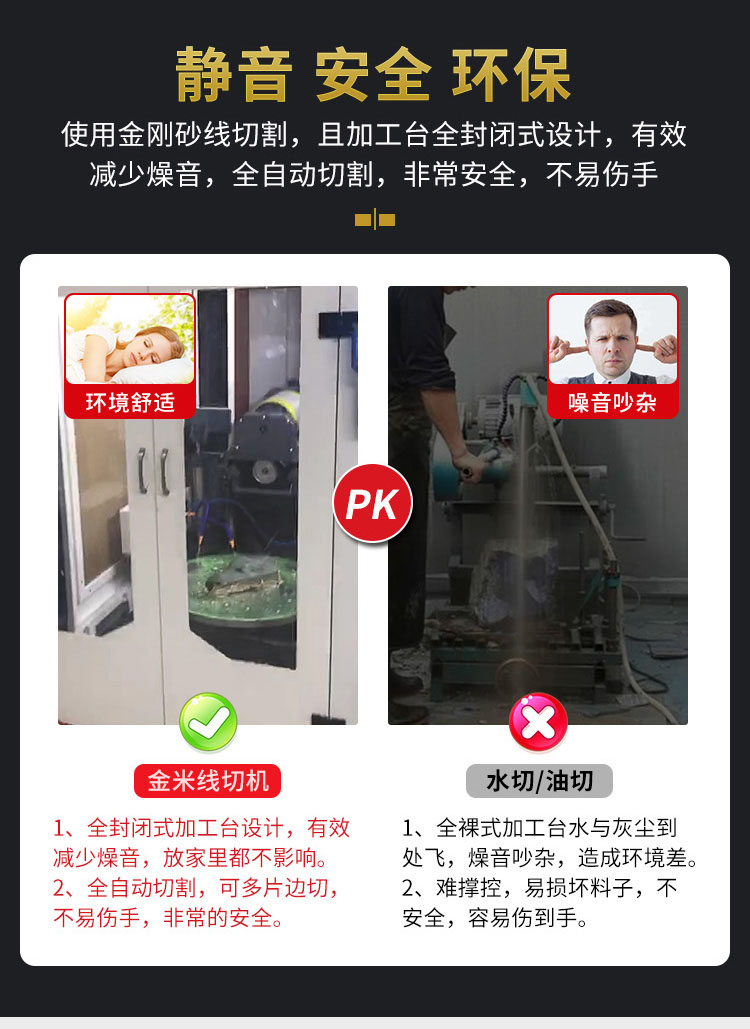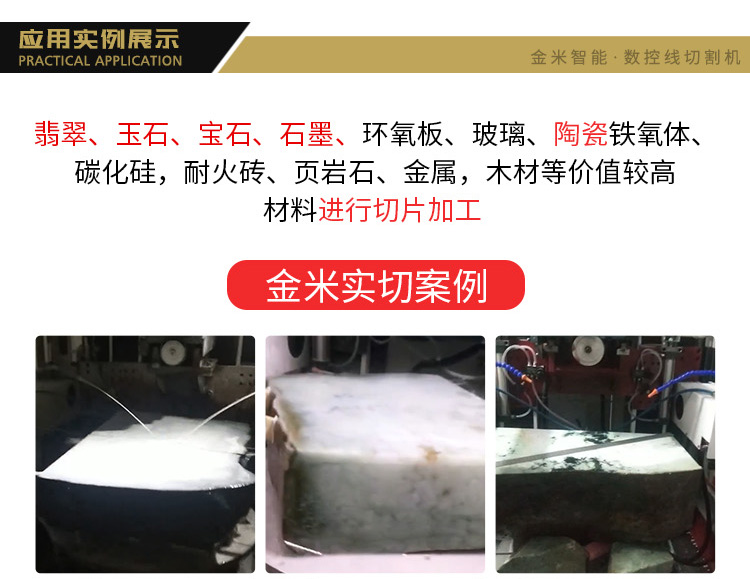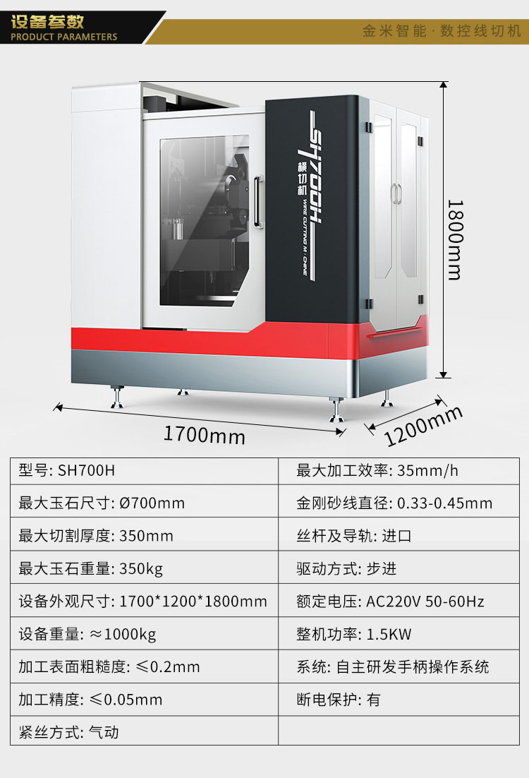 SH700H是一款采用金剛砂線往復(fù)走絲的自動精準(zhǔn)切割的線切割機(jī)。適合切割:高硬度的翡翠、玉石、寶石、莫桑鉆、玻璃、陶瓷、大理石、環(huán)氧板、鐵氧體、碳化硅、頁巖石、木頭、人工材料等切片。應(yīng)用領(lǐng)域:玉石加工廠、工藝品加工廠、寶石行業(yè)加工、工業(yè)原料切割等。