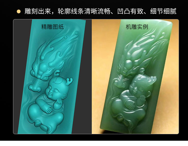 4040是一款結構設計合理,造型獨特的三軸平面浮雕機,主結構采用整體鑄方式,可使機床長期不變形,加工時確保機床的高剛性和高抗振性能。傳動件采用進口精密滾珠絲桿和方型導軌,使精確度更高。操作系統采用專業玉雕系統,搭載自動對刀系統,可實現10秒完成對刀步驟,可隨時暫停設備加工狀態,可隨時增減加工雕刻速度,并增加斷刀報警功能。設備采用1.5kw的玉石專用三軸承高精度水冷變頻主軸,能變頻控制設備、節約用電、保證精度高,辦距設備大、不燒刀。4040數控雕刻機可一次性加工完玉石牌子、文字、硯臺、模具、人物浮雕、山水畫浮雕、陰雕等。適合材料:翡翠、和田玉、岫玉、瑪瑙、黃龍玉、鵝卵石、水晶、玻璃、銀、銅、鋁等金屬、琥珀、貝殼、木材、人造材等雕刻。
